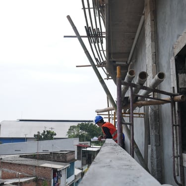 Tahap 2: Konstruksi struktur utama (kerangka bangunan).
